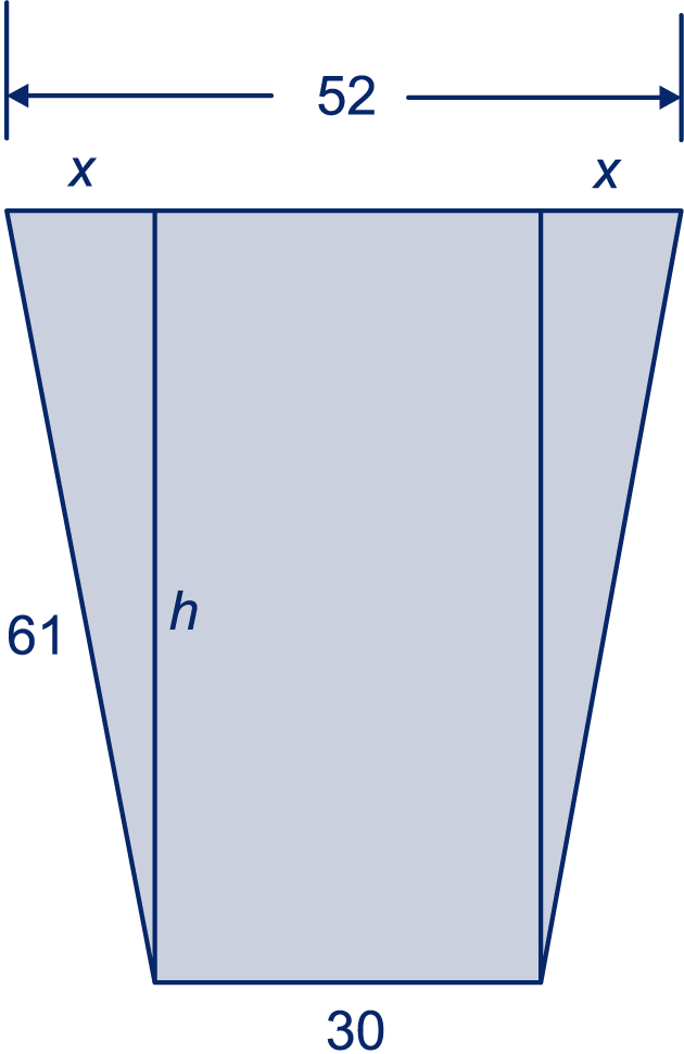 Teken de hoogtelijn . We krijgen zo twee -driehoeken, namelijk driehoek en driehoek . Dus . De oppervlakte van driehoek is