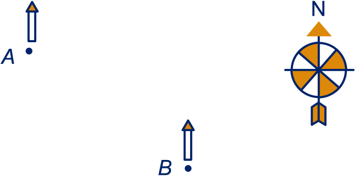 Ook al kun je de afstand van tot en van tot niet rechtstreeks meten, toch kun je de ligging van ten opzichte van en bepalen.
