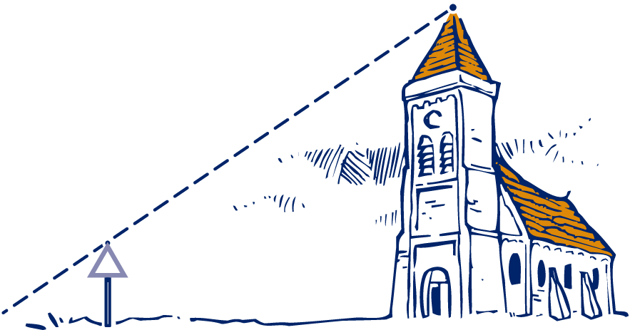 Anne wil de hoogte van een kerktoren meten. Op meter afstand van de toren staat een verkeersbord. Dat bord is meter hoog. Anne loopt zo ver van het bord weg dat ze de bovenkant van het verkeersbord en de torenspits in een lijn ziet. Ze staat dan m van het bord. De ooghoogte van Anne is m.