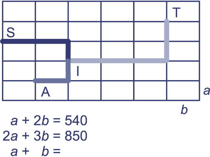 In de plattegrond zijn het huis van Ines (punt I), de school (punt S), de tennisclub (punt T) en het huis van Anne (punt A) aangegeven.