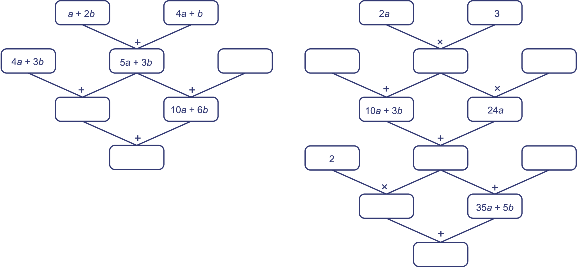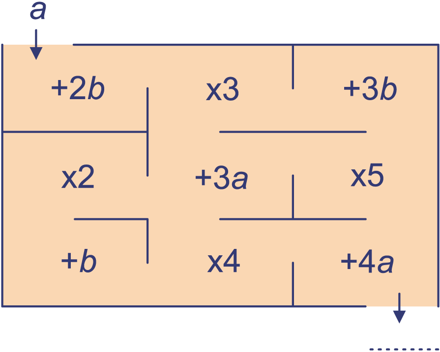 In de opgaven 5 en 6 heb je de routes en bekeken. In het rooster zie je dat deze uitdrukkingen verschillend zijn. Je kunt dit ook controleren door voor en getallen in te vullen.