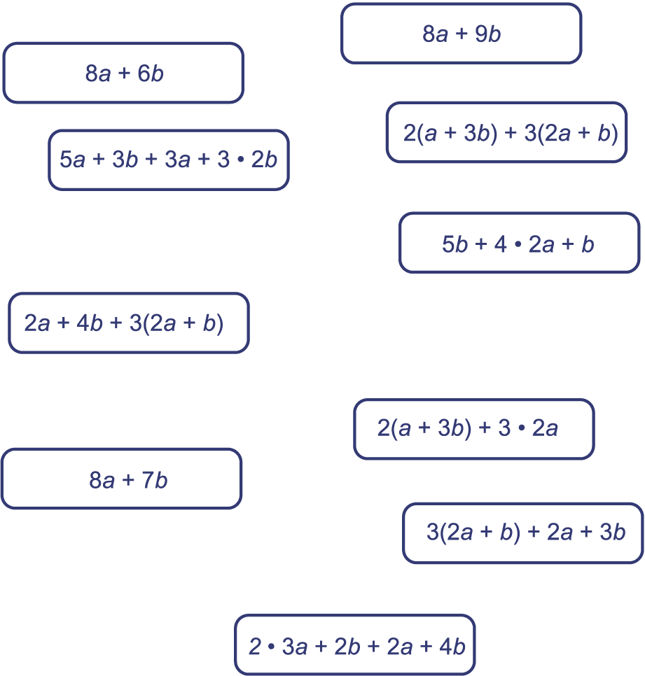 Verbind de uitdrukkingen die gelijk zijn. Als er meer dan twee uitdrukkingen gelijk zijn, maak dan een ketting. De uitdrukkingen staan ook op het werkblad.