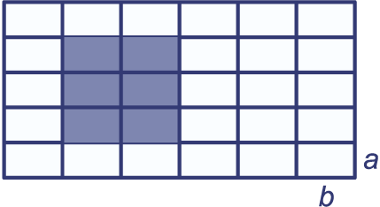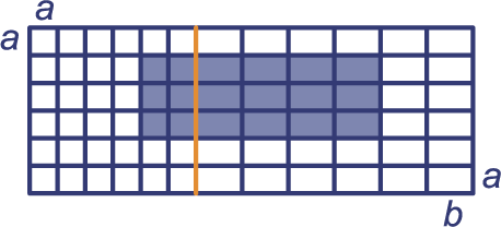 Je kunt de oppervlakte van de blauw gekleurde rechthoek op twee manieren berekenen.