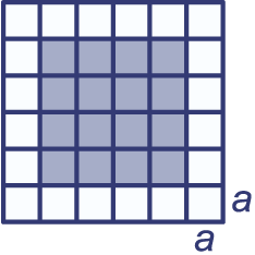 Je kunt de oppervlakte van het blauw gekleurde vierkant op twee manieren berekenen.
