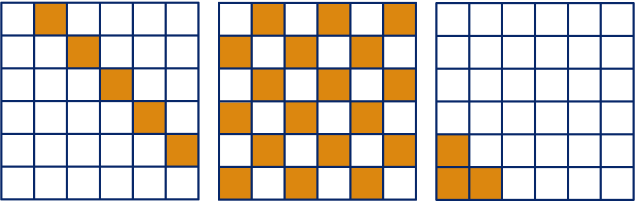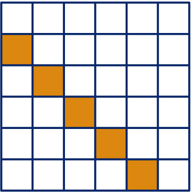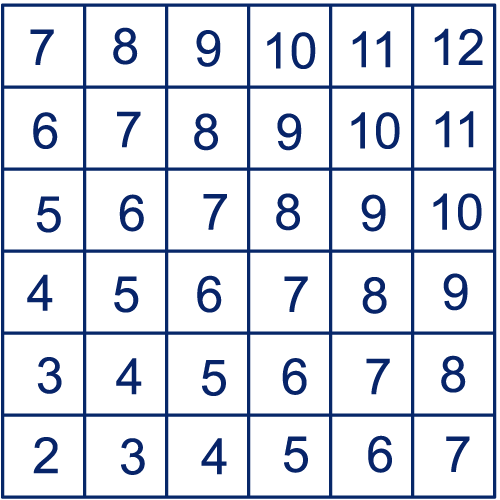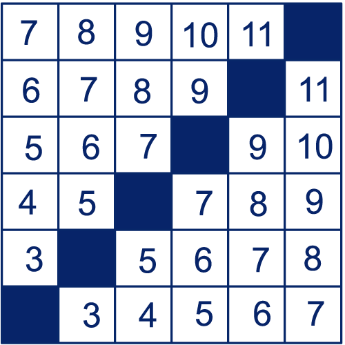 De vakjes op de diagonaal, dus twee gelijke uitkomsten, doen niet meer mee.