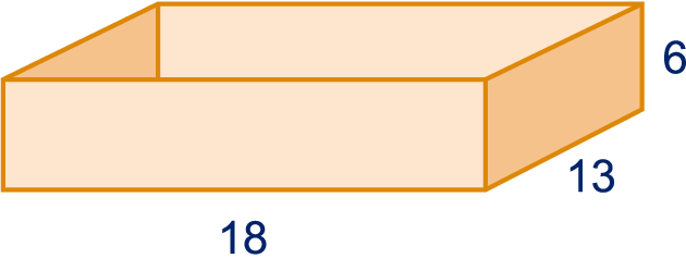 Het doosje is 18 bij 13 bij 6 cm.