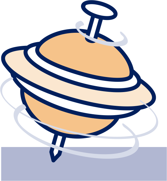 We steken een as door de bol. We doen dat zó, dat de onderkant van de bol op hoogte