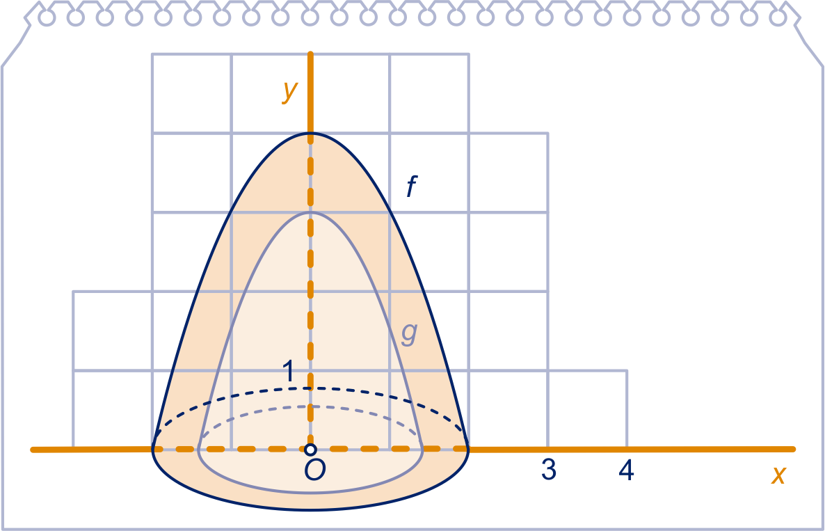 We bekijken de functie op . Het gebied tussen de -as en de grafiek van de functie wordt om de -as gewenteld.