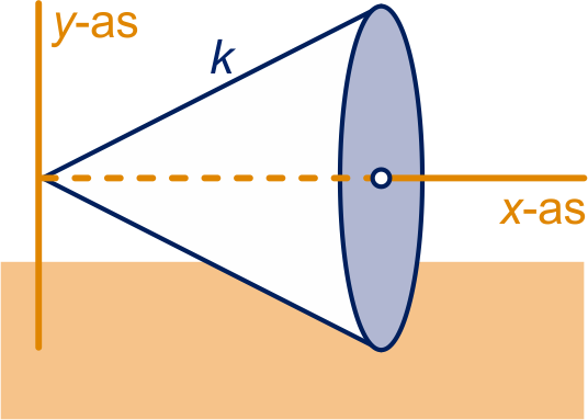 en de bovenkant op hoogte , beide vlakken loodrecht op de as. De oppervlakte van de doorsnede van