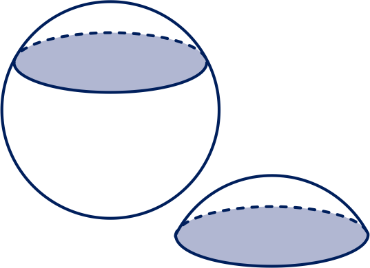 Snij een bol in tweeën volgens een vlakke snede. Het kleinste van de twee delen noem je een bolsegment.