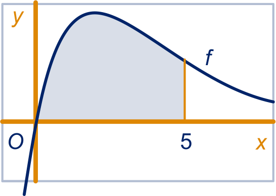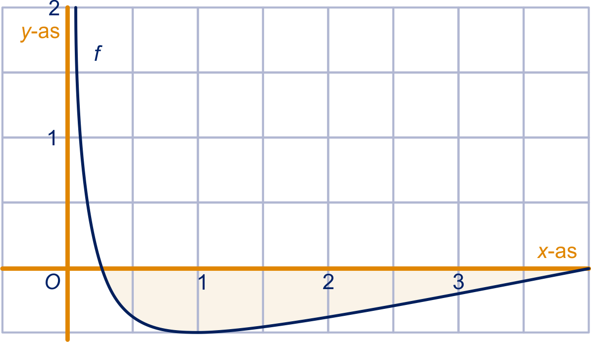 Het vlakdeel ingesloten door de -as en de grafiek van is in de figuur gekleurd.