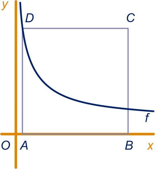is het deel van dit vierkant dat zich boven de grafiek bevindt.