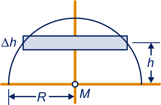 We gaan op zoek naar het zwaartepunt van een homogene halve cirkel. De straal van de cirkel is en het middelpunt . Het zwaartepunt ligt op de symmetrieas. We benaderen de halve cirkel met een stapel rechthoeken met hoogte . De halve cirkel snijdt de verticale zijden van de rechthoeken middendoor. De gemiddelde hoogte van een rechthoek noemen we .