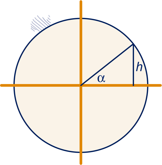 Hiernaast zie je een verticale doorsnede door het middelpunt van de bol. De