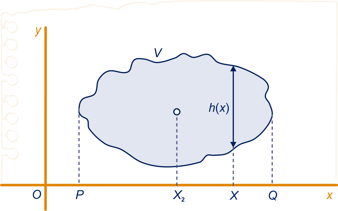 Bereken exact de -coördinaat van het zwaartepunt van dit vlakdeel.