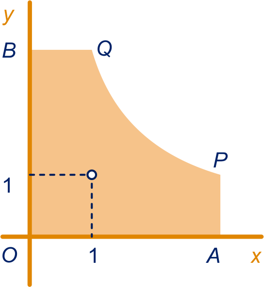 Het vlakdeel figuur 3 wordt begrensd door de -as, de -as, de lijn , de lijn en de hyperbool met vergelijking .