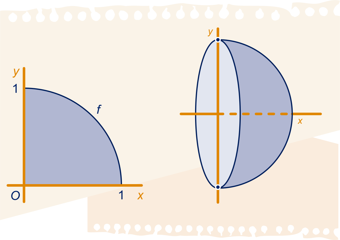 We wentelen het kwart van de cirkelschijf om de -as.